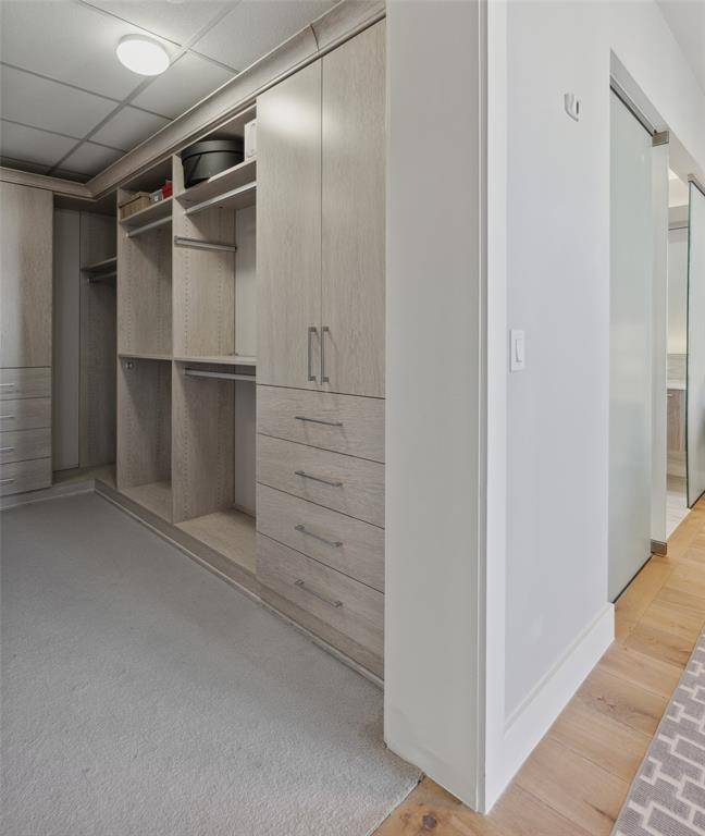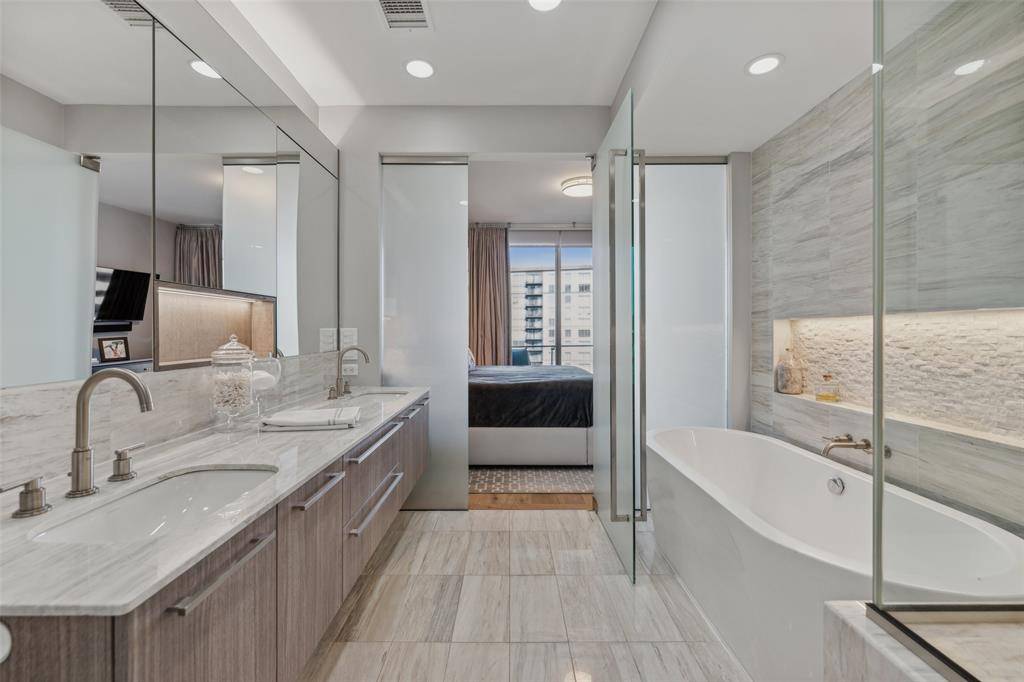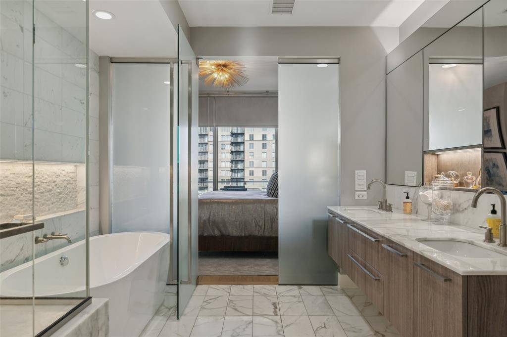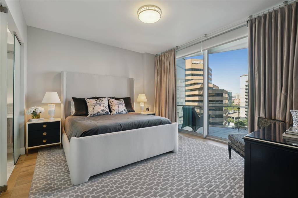 Step into this light-filled, sophisticated Bleu Ciel residence, beautifully designed by interior designer Tobi Fairley. The open, airy layout is complemented by an expansive balcony that seamlessly blends indoor and outdoor living, featuring a cozy fireplace and stunning Northeast views of the Dallas —perfect for entertaining or simply relaxing. This home boasts several thoughtful upgrades, including custom window treatments, designer lighting, and California Closets in both bedrooms and the laundry room, optimizing storage and space. Located in the vibrant heart of the Harwood District, you're just steps away from top-tier dining, shopping, Uptown, Klyde Warren Park, the Arts District, and Downtown Dallas.