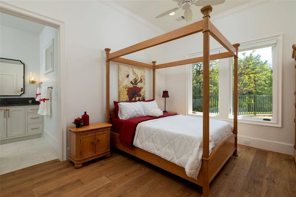 Nestled in the prestigious gated community of Stony Brook, this custom SCH award-winning Mediterranean estate offers 4,501 square feet of refined living space in a serene cul-de-sac backing to a greenbelt with no neighbors on one side. Designed for both elegance and comfort, the home features soaring ceilings, hand-scraped hardwood floors in living areas, and tile finishes throughout each of the six bathrooms. Four spacious bedrooms each include an ensuite bath, while a thoughtfully designed fourth garage bay with full bath accommodates an RV or flexible use. This area may be converted into an ADU for additional living space.