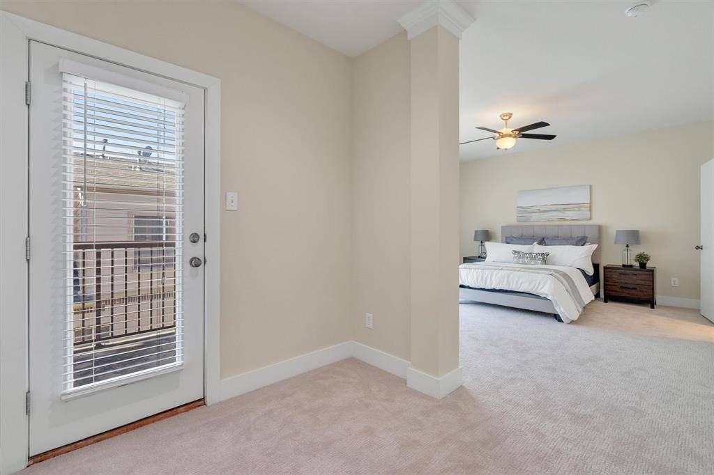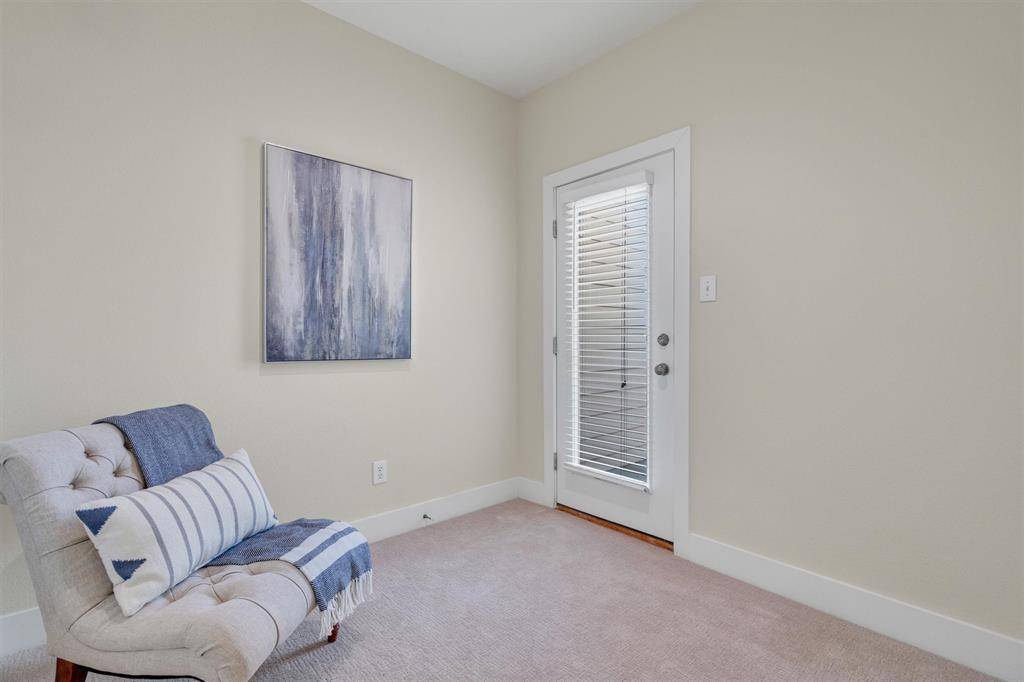 Upstairs, the primary suite offers a quiet retreat with a custom walk-in closet and a well-appointed bath featuring a separate tub and shower. A flexible office with balcony access sits just outside the suite, complemented by an adjacent den ideal for a second workspace or flex space.