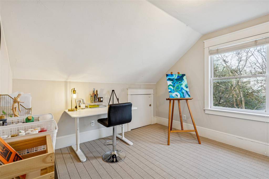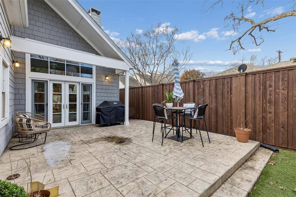 Discover this stately Cape Cod ideally located in the heart of beloved East Dallas. Timeless character shines throughout, from stained-glass transom windows to recessed arched shelving. Upon entry, you're welcomed into a stylish parlor adorned with tasteful wallpaper, setting a refined and inviting tone. The adjacent formal dining room features elegant banquet seating and flows seamlessly into the kitchen—perfect for both everyday living and special gatherings. The kitchen, updated in 2019, blends style and function with quartzite countertops, a Bertazzoni range, and a center island with bar seating. The main living area is highlighted by a gas fireplace with built-ins and soaring 19-foot vaulted ceilings, opening effortlessly to the backyard for an ideal indoor-outdoor living experience. The first floor offers a spacious primary retreat with French doors to the outdoor living area, abundant natural light, and a generous layout. The primary bath includes dual vanities, a large soaking tub, a separate frameless glass shower, and a walk-in closet. A second first-floor bedroom provides an ensuite bath and two closets. Upstairs, flexible living spaces allow for customization—an office can easily convert to a nursery, or the upstairs living area can function as a fourth bedroom. The private backyard features a large patio and low-maintenance turf, ideal for relaxing or entertaining. Additional amenities include a detached two-car garage and utility room. Within walking distance to Mockingbird Elementary and the dining, shopping, and entertainment East Dallas is known for, this home effortlessly blends charm, functionality, and an exceptional location.