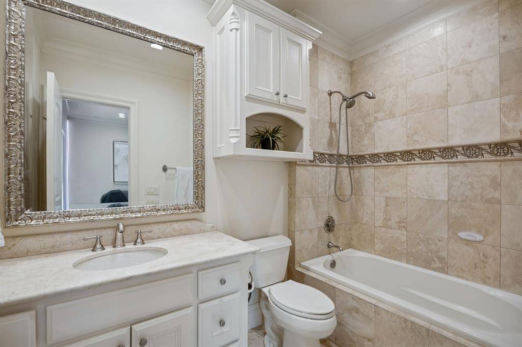 The spacious primary suite serves as a serene retreat with fireplace, private patio, spa-inspired bath with dual water closets, oversized walk-in closet, soaking tub, and walk-in shower. All secondary bedrooms feature en-suite baths and walk-in closets. A second-level mini kitchen adds convenience.
