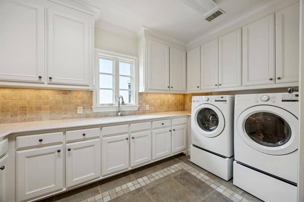A detached back house, not included in the square footage, features a golf simulator on the first level and a private movie theater on the second, and can easily convert back to a three-car garage. Additional amenities include a built-in grill, integrated audio, and camera system. Zoned for Armstrong Elementary.
