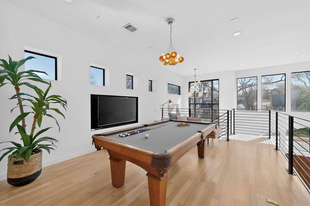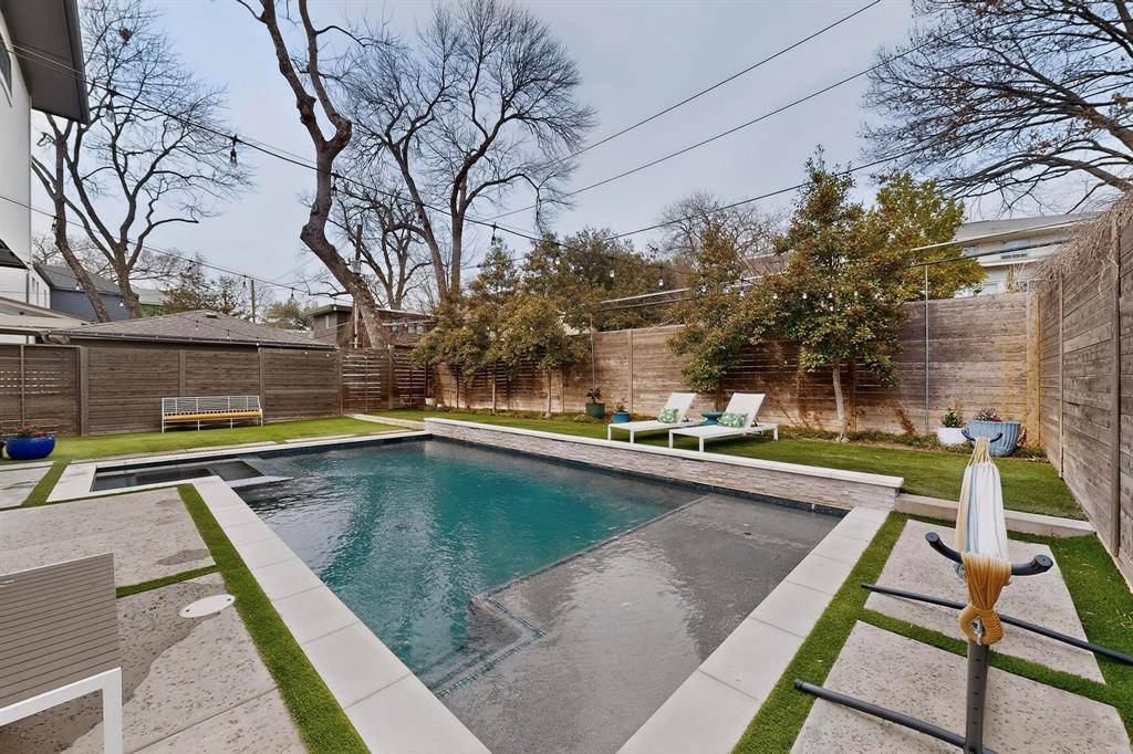 Architectural presence and intentional design define this modern Keen Homes residence in the heart of Lakewood, just moments from White Rock Lake. Built in 2017 and set along a welcoming tree-lined block, the home blends soaring contemporary lines with warm, livable spaces designed for both everyday comfort and elevated entertaining. Walls of strategically placed windows fill the home with natural light while maintaining exceptional privacy, highlighting the open, airy floor plan and impressive ceiling heights. The design-forward kitchen is anchored by an oversized quartz island with seating for six, a full wall of cabinetry surrounding the built-in refrigerator, double ovens, built-in microwave and a six-burner gas cooktop positioned beneath a window overlooking the pool and turf yard. A striking oversized tile feature wall adds architectural impact, flowing into the main living area with gas fireplace, dining space and wet bar. Downstairs includes a private guest suite with full bath and dedicated office. The primary retreat offers a true spa-inspired experience with heated ceramic tile floors, a dramatic full-wall dual shower, separate soaking tub and an oversized dual vanity with abundant storage. The expansive custom closet showcases a built-in dresser island and provides direct access to the laundry room for everyday convenience. Upstairs, a loft-style game room or secondary living space with wet bar creates an inviting entertaining hub, complemented by a nearby half bath. Each additional bedroom features its own en suite bath and walk-in closet, offering exceptional comfort and privacy. Designed for seamless indoor-outdoor living, the backyard showcases a pool and spa with tanning ledge and water feature, a covered patio with fireplace and remote-operated screen enclosure and a low-maintenance turf yard. Additional highlights include upgraded lighting throughout and thoughtfully selected modern finishes. Zoned to exemplary Lakewood Elementary.