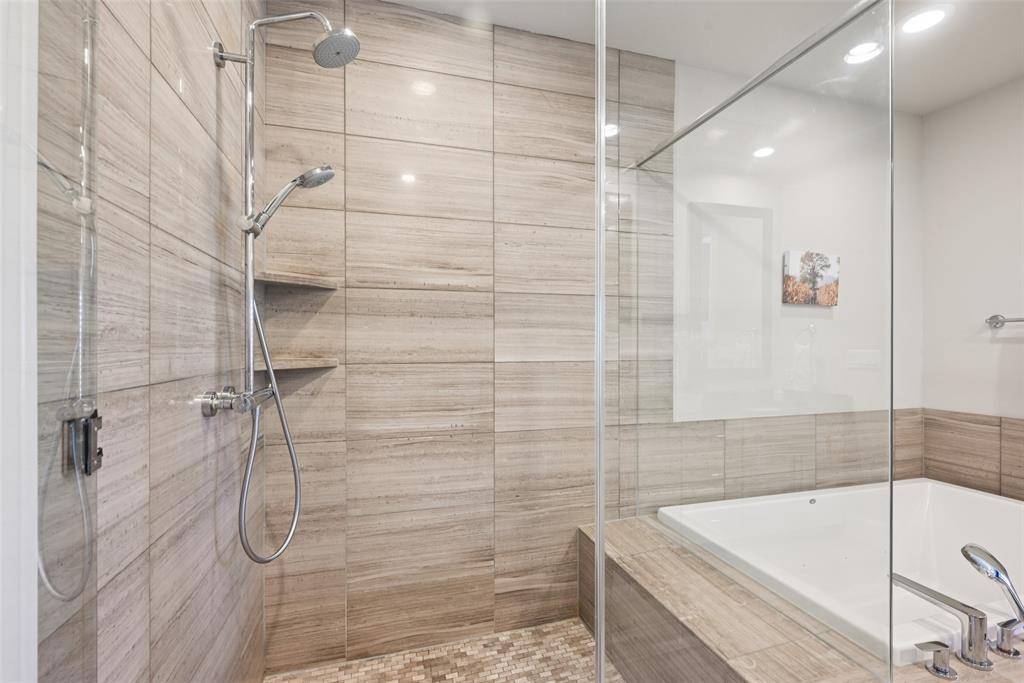 Private balconies on the second and third floors provide elevated outdoor spaces with a peaceful, treehouse-like feel. The primary suite serves as a true retreat with a generous sitting or workout area, an oversized walk-in closet, spa-style bath with a separate soaking, jetted tub, and a private balcony. Two additional bedrooms, each with an en-suite bathrooms, offer flexibility for guests, a dedicated home office, or roommate living.