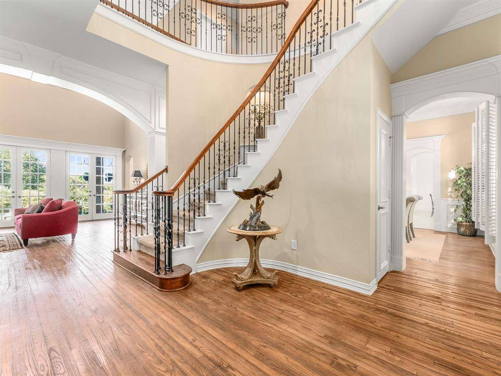 PRIVATE GATED ESTATE ON PEYTONVILLE AVE.... A true one-of-a-kind masterpiece, this estate sits on nearly 1 acre of manicured grounds along one of Southlake's most prestigious addresses. From its elegant architectural design and circular driveway to its commanding presence on Peytonville Avenue, this home embodies refined luxury and timeless sophistication. This remarkable estate offers a rare opportunity to experience luxury and privacy. Encompassing over 6,000 square feet, the residence blends classic craftsmanship with modern comfort—creating the perfect environment for both grand entertaining and everyday living. Beyond the iron fence and dual gates lies your private sanctuary, complete with a resort-style pool, spa, and fully equipped outdoor kitchen - all with incredible views! A pavilion-style pool house provides a shaded retreat for lounging and dining, while the expansive grounds offer ample space for a sport or tennis court. Inside, warm hardwood floors, 3 fireplaces, and a dedicated executive office set a tone of understated elegance. The formal dining room on the main level is perfect for entertaining guests or hosting family celebrations. The gourmet kitchen is a chef's dream—featuring a Viking 6-burner gas range, new seamless quartz countertops, and French-inspired cabinetry—and naturally flows into the spacious family room with a fireplace, creating a warm and inviting atmosphere at the heart of the home. The main-floor primary suite is a serene retreat with a beautifully updated ensuite showcasing quartz countertops, modern lighting, and spa-quality finishes. Upstairs, discover 4 spacious bedrooms, 2.5 stylishly renovated bathrooms, and inviting game and oversized media room. Additional highlights include a three-car garage and abundant storage throughout. This extraordinary Peytonville estate delivers the complete package—prestige, privacy, and lasting value—in one of Southlake's most sought-after neighborhoods. HOME WAS RECENTLY APPRAISED FOR 2.4M!
