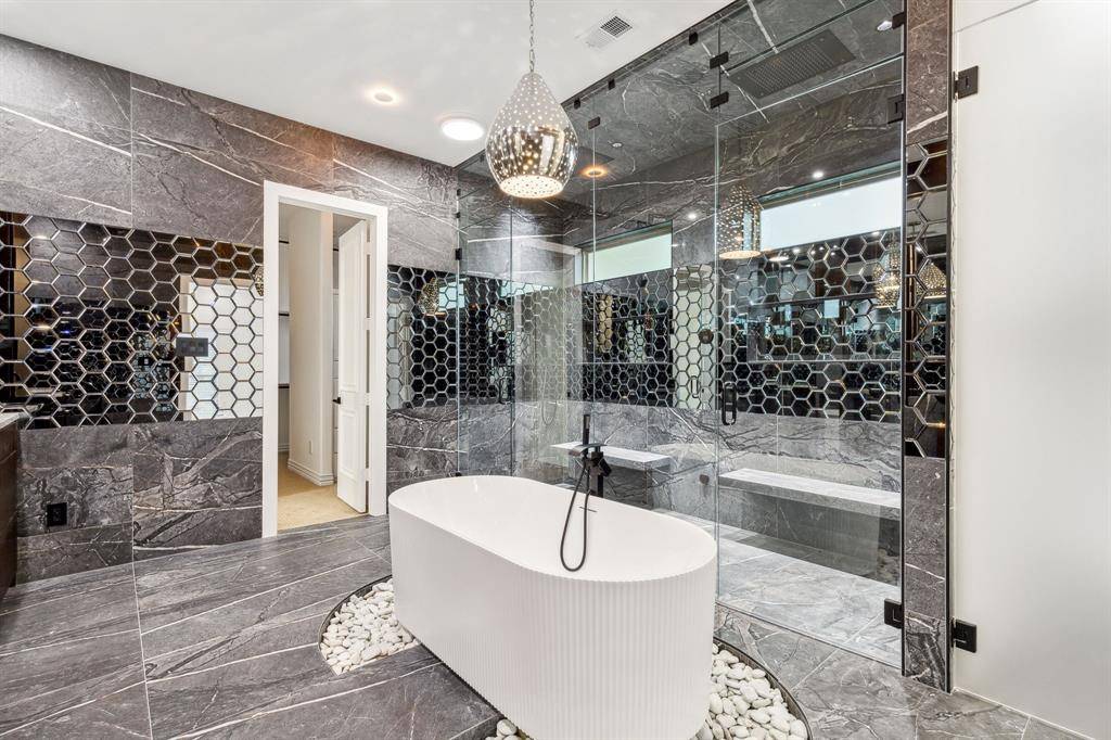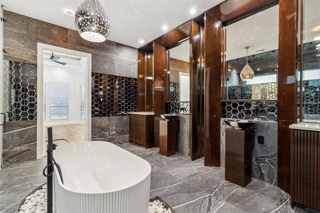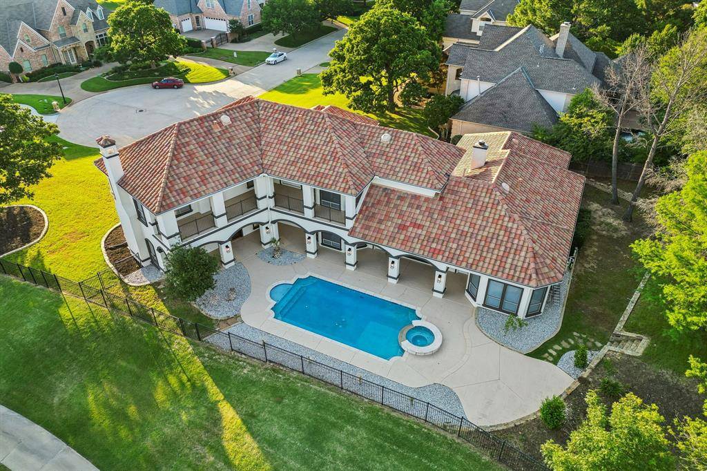 Experience luxury in this fully remodeled Mediterranean home in the sought-after Timarron community. Custom designed with no detail overlooked, this property offers stunning golf course views from a sprawling pool and back patios. Featuring gorgeous hardwood floors, a modern transitional style, and exquisite finish outs. The chef's kitchen boasts a gigantic granite island, Wolf appliances, Sub Zero fridge and wine chiller, and open concept to a living room with impressive granite fireplace. The primary suite dazzles with a spa-like bathroom, featuring a custom tub and expansive double shower including rainhead systems and a vast custom closet. Additional downstairs guest bedroom with a full bath. Upstairs features 3 bedrooms, a game room and media room and gorgeous views. Resort style backyard with privacy and golf course views, Sonos speakers, salt water pool equipped with Aqua-Link automation, allowing pool and spa to be controlled from your phone, with custom LED light (choose your pool color). Full security system and cameras recently installed. 3-car garage, community pools, trails, and tennis courts. Cul-de-sac lot located in the prestigious Carroll ISD. A must-see for those seeking exclusive living. Town Square shopping and restaurants just minutes away. 15 minutes to DFW Airport. Tenant responsible for all utilities, cable, lawn and poolcare.
