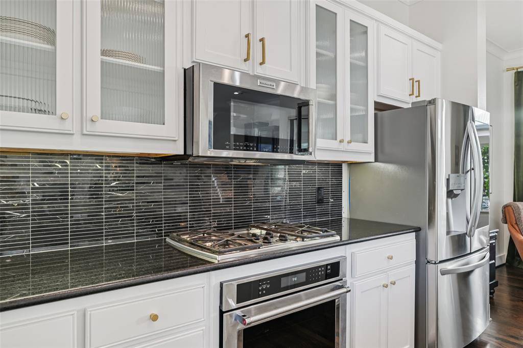HOA dues pre-paid thru Jan '28! Tucked behind the gates on a mature tree-lined street in SoHip by Turtle Creek, this sun-filled, lock-and-leave, multi-level home offers the rare combination of privacy, space, and walkable city living. With outdoor space on two levels for morning coffee to evening cocktails, 3 ensuite bedrooms, and one of only two units in the 8-unit community offering 2,425 sq ft, 3926 Holland Avenue #102 is a true turnkey opportunity in one of Dallas' most vibrant neighborhoods. A perfect layout for entertaining friends & family, the main living area features an open concept floor plan with 10-ft ceilings, an abundance of natural light, a gas fireplace, and an updated wet bar w beverage fridge. The chef's kitchen includes a gas range, an oversized island and ample storage & countertop space. Enjoy sunrise, sunset or quiet time from the covered balcony off the kitchen's breakfast area or reading nook. The light-filled primary suite on the 3rd FL includes a sitting or workout area. The large, windowed bathroom has dual vanities, a separate walk-in shower & jetted tub. The utility room is conveniently located on the 3rd FL, as is a large guest room with an updated, walk-in shower. On the ground FL, a spacious bedroom that could also be an office or living area w full bath opens onto a fully enclosed, recently turfed (2024) private yard that provides 350+ sq ft of outdoor space for relaxing or entertaining. The attached, 2-car garage has new epoxy flooring. Additional updates incl: hardwood floors, Roman shades, updated baths w new tubs, tile, toilets, frameless glass panels & more! The neighborhood is conveniently located in 75219 (SoHip) next to Highland Park & is walkable to more than 130 restaurants-retail within a mile by Turtle Creek, Highland Park, Uptown & Cedar Springs. HOA fees cover exterior maintenance & insurance incl. roof-balconies; all water-sewer-trash-recycling-gas bills; landscaping, gate. Owner pays electricity, cable & internet.