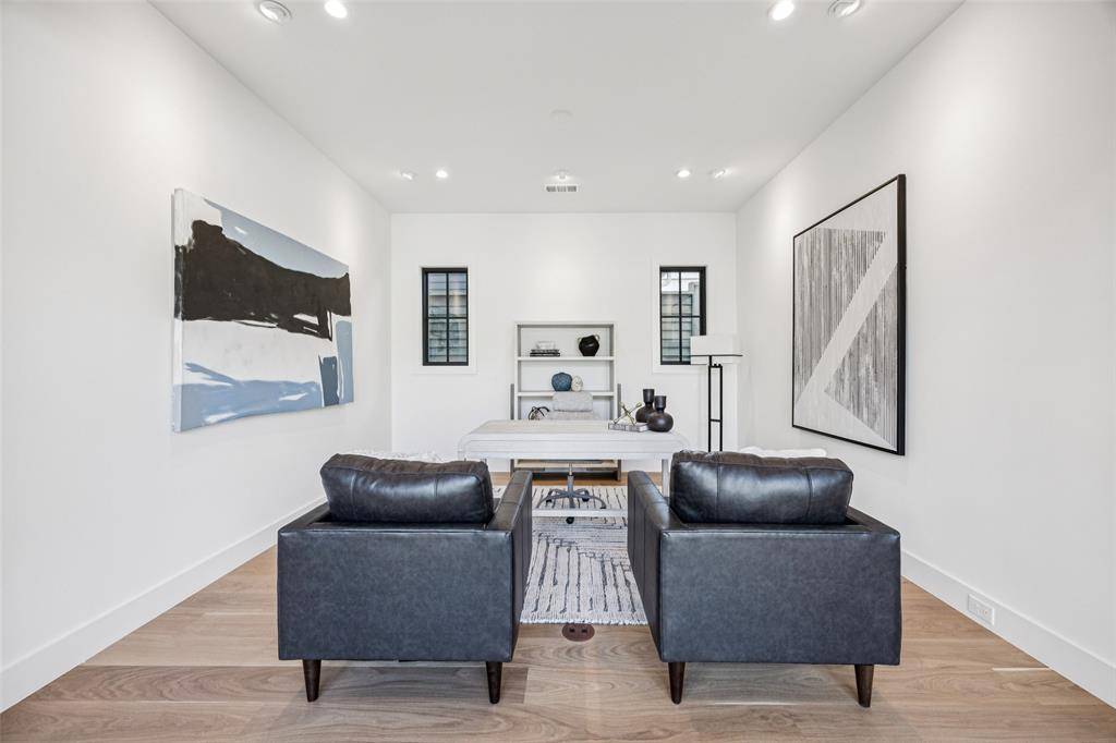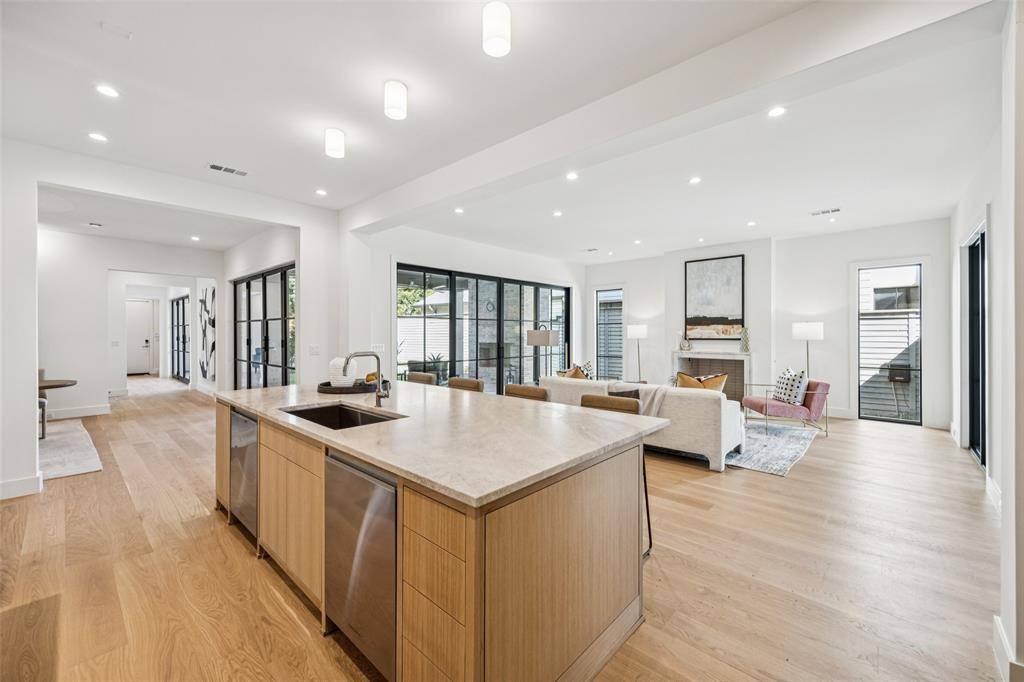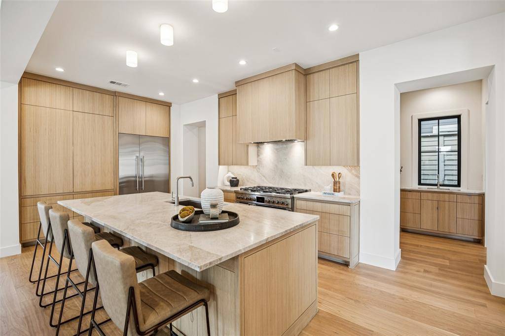 Nestled on a quiet, tree-lined street in the heart of Lakewood, this stunning new construction by Dallas Newport Group combines timeless curb appeal with thoughtful modern design. A welcoming front porch leads into a bright, open layout where the kitchen, dining, and living spaces flow seamlessly together. The kitchen is a true showpiece, featuring a built-in refrigerator, abundant custom cabinetry, a scullery, and a butler's pantry that connects to the formal dining room—perfect for entertaining. Walls of windows and sliding glass doors fill the main living area with natural light and open to the covered patio, complete with a cozy fireplace and built-in grill for year-round enjoyment. A secondary living space at the back of the home offers flexibility as a den or private office, while a first-floor guest suite with an ensuite bath provides comfort and privacy for visitors. Upstairs, the oversized primary suite offers a luxurious retreat with a spa-inspired bathroom featuring dual vanities, a soaking tub, a spacious dual-head shower, and a custom walk-in closet with built-ins. Three additional bedrooms, each with ensuite baths, a full-size laundry room, and a large upstairs living area complete the second level. With meticulous craftsmanship, modern finishes, and an ideal Lakewood location, this home blends sophistication, comfort, and functionality in every detail.