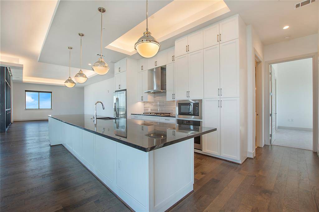 30th Floor Penthouse with 180 degree views available featuring high end amenities & residential services without the HOA dues. With 2 large balconies situated on opposite corners of this large end unit home, there are unobstructed southern views of Downtown, due west views catching the perfect sunset every evening & northern views of Uptown & Victory Park including the AA Center, Katy Trail Entrance & more. Upon accessing your unit with keyless entry, you'll find an interior that boasts a unique lighting package featuring crafted tray ceilings with lit coves, custom dimmable lighting, and solar & blackout shades to balance natural lighting. Other features include a large walk in laundry room with full sized washer & dryer, floor to ceiling windows in living areas, a wine refrigerator & ice maker, Sonos speaker system, 3 large bedrooms, two of which have ensuite baths & all bedrooms feature walk-in closets with customizable elfa shelving. Community features include 24hr concierge, valet services, a vibrant and lively resident bar, a resort style pool with TV's & fire-pits and ample seating arrangements, oversized fitness center & flex studio with spin bikes, his and hers locker rooms on amenity level perfect for changing between a workout and sitting poolside. Bonus features include private conference & dining rooms, a pet wash space & direct private access to Tom Thumb. Steps away are retail & restaurants like The Henry, TacoLingo Tex Mex, North Italia, Corepower Yoga, CycleBar, Drybar, & Happiest Hour to name a few. Extra $150 per month on top of list price for amenity fee, trash, pest control & garage access to include 1 vehicle per lease holder. Market rate is $10,407 on a 13 mo. lease but LIST PRICE reflects net effective rent with special of 8 weeks free SELF-PRORATED over 13 mo. term. Special is taken UPFRONT. Private garages available for additional $350 per month pending availability. Pricing and specials subject to change.