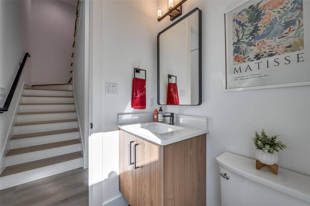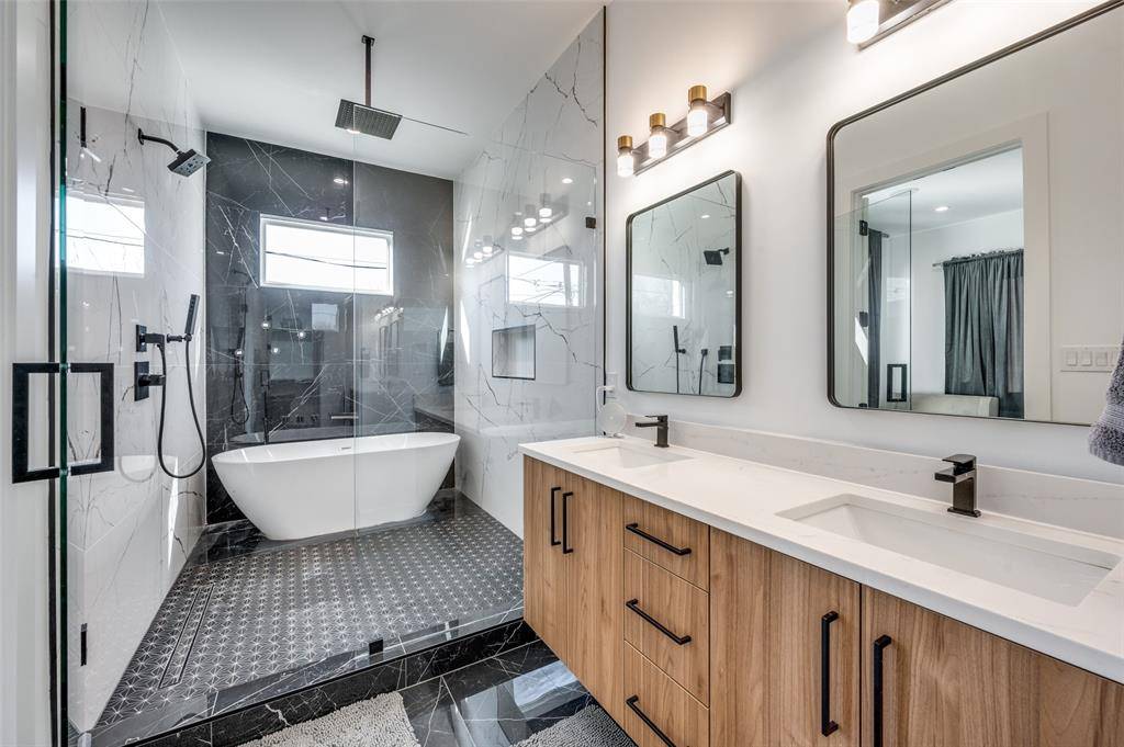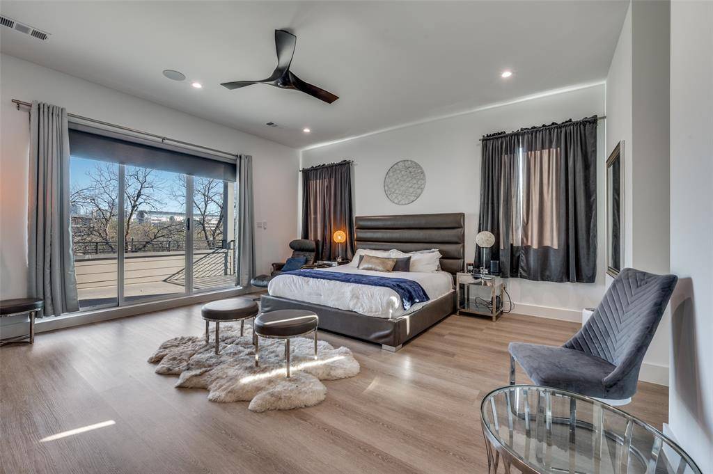 Experience modern luxury located near Uptown and the Medical District. This striking three-story residence features 4 bedrooms, 4.5 bathrooms, and thoughtfully designed spaces for both comfort and entertaining. The expansive gourmet kitchen showcases sleek stainless-steel appliances and ample workspace, perfect for culinary enthusiasts. Enjoy effortless indoor-outdoor living with 10 private balconies and a spacious backyard large enough to accommodate a pool. The bright and open living room offers stunning panoramic views of Uptown's skyline, while the elegant dining area provides the perfect setting for gatherings. The second floor features two luxurious primary suites, each with oversized showers, freestanding soaking tubs, and impressive city views. On the third floor, you'll find two additional bedrooms, two bathrooms, and an oversized roof-deck-style balcony ideal for relaxing or entertaining. High-end finishes throughout—including custom shades, quartz countertops, double vanities, and a dramatic 72-inch fireplace—create a sophisticated and stylish retreat designed for contemporary living.