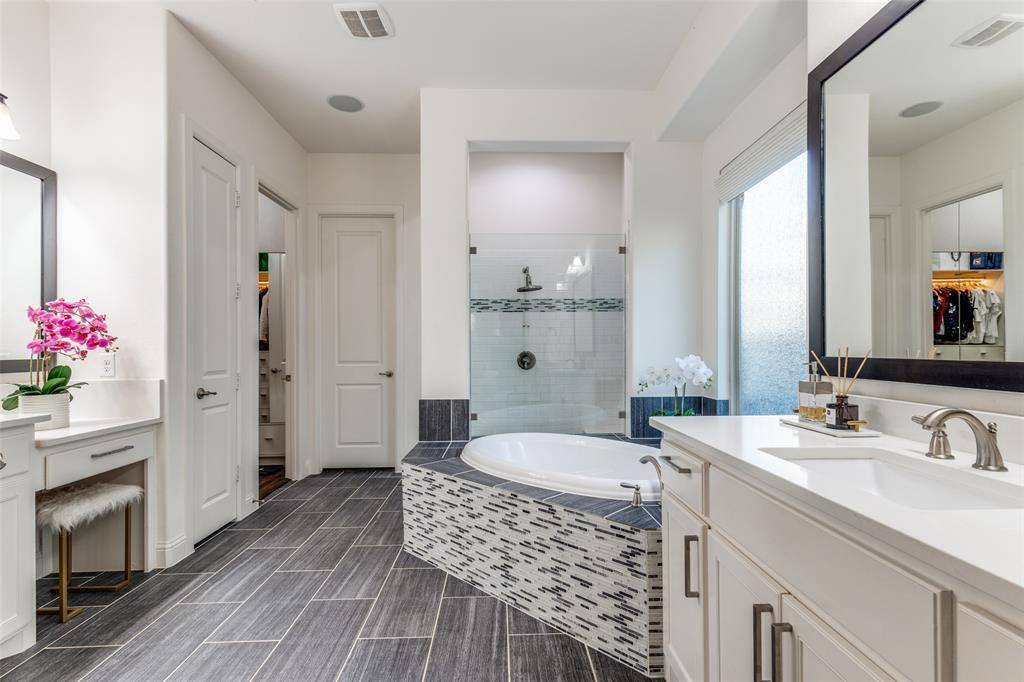 Additional highlights include custom-built his-and-hers walk-in closets with integrated lighting, mirror doors, a dedicated shoe cabinet, and no carpet on the first floor. Located within a premier master-planned community offering resort-style amenities including pools, fitness center, splash park, and more.