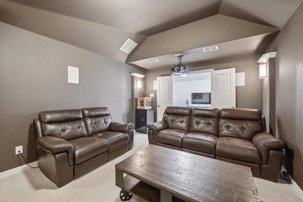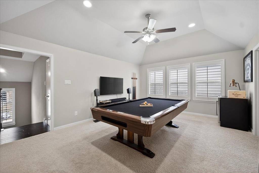 Upstairs includes a spacious game room with custom cabinetry, quartz countertops, beverage fridge, & water line for a future wet bar. A media room with 7.1 Dolby surround sound creates the perfect movie-night experience. A built-in kids study area with pre-wired electrical provides a convenient workspace.