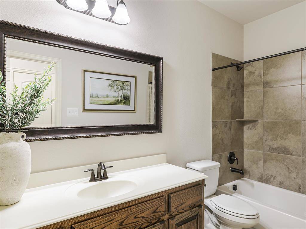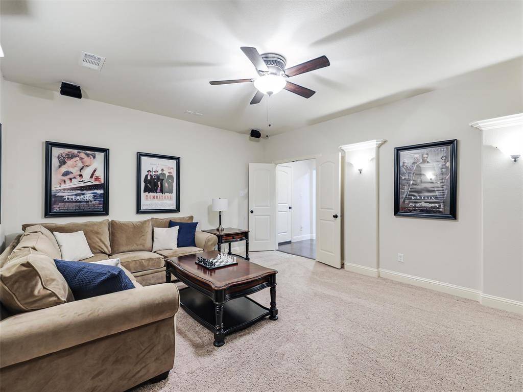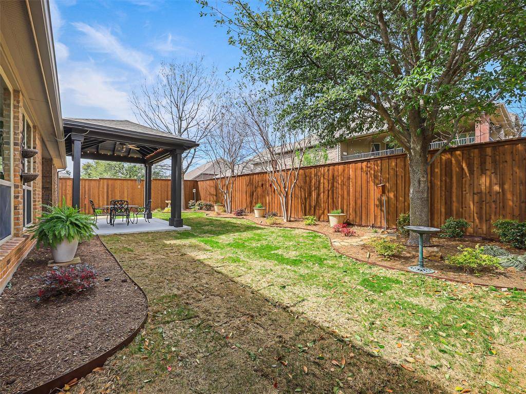You don't want to miss out on this hard to find, American Legend, one owner, well-maintained, 2,856 sq ft 3 bedroom, 2.5 bath one story home with study and media room. Meticulously maintained in highly desired Frisco School District. This open floorplan home has a large primary suite with spacious walk-in closet, grand kitchen with numerous cabinets, a breakfast nook and a formal dining room for entertaining. The covered back patio creates an extension of indoor outdoor living. Ideal for Summer living, and quiet mornings. The living room has a wood-burning fireplace with gas logs. The media room is wired for 7.1 surround sound. The study has built-ins with 2 desks and tons of storage. The 2 car garage has an upgraded 18 foot wide cedar garage door that will fit two large vehicles. Mature trees and beautifully landscaped and maintained front and back yards with new sod in the back yard. Bonus secluded area off of the backyard for outdoor storage. Located between Sam Rayburn Tollway 121 and US Highway 380, making commutes and errands simple and efficient. Minutes away from the PGA Frisco development, Universal Studios and growing North Frisco entertainment district including Legacy West and The Star. Premier dining and shopping entertainment close to home. Updates include: 2 Lennox AC and heating units (2025), 2 Rheem 50 gallon hot water heaters (2025), Insinkerator garbage disposal (2024), Updated light fixtures in formal dining and kitchen (2025), LG Dishwasher (2020), New Roof (2019). The backyard has a board-on-board, 8 foot cedar fence (2023) and a custom arbor with an extended patio (2023). It also includes updated coach lights on the front of the home and VOLT lighting landscape lights in both the front and back yards.