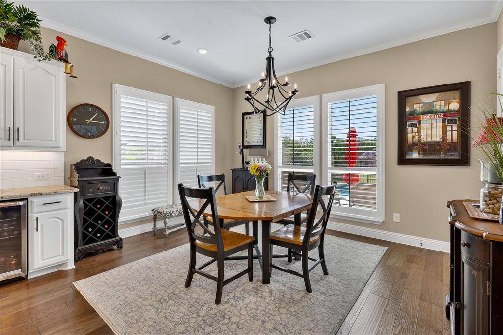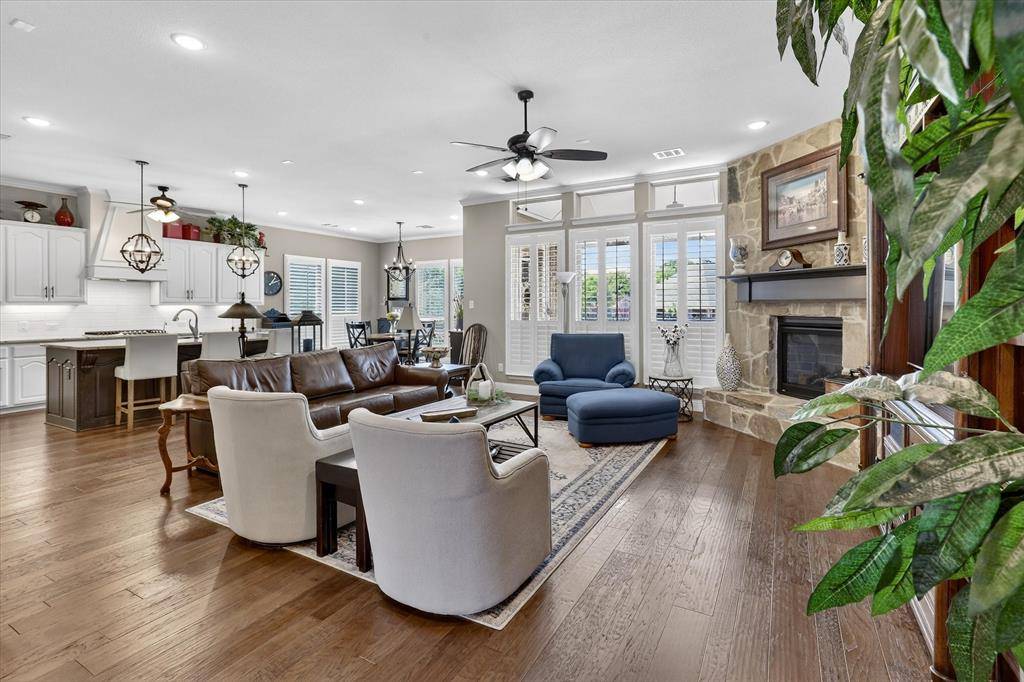 You'll fall in love with this beautiful blend of luxury and comfort, showcasing stunning features throughout this impeccably maintained 3 bedroom 2 bath home with wood floors and plantation shutters that enhances the home's elegance throughout. At the heart of the home, the gourmet kitchen impresses with a grand center island, gas cooktop, double ovens, and striking granite countertops, perfectly designed for both entertaining and everyday living. The kitchen flows effortlessly into the spacious living area, where a beautiful stone fireplace creates a warm and inviting atmosphere. The primary suite offers a relaxing retreat with an ensuite bathroom with dual sinks, granite countertops, walk in whirlpool bathtub, a separate shower and large walk in closet. Designed with everyday functionality in mind, the home features a mudroom and an oversized laundry room complete with built in cabinetry, a utility sink, and direct access to the garage. The laundry space also connects seamlessly to the primary suite's walk in closet! Step outside to your personnel backyard oasis, perfect for summer days and relaxing evenings. Enjoy the covered back porch that features two sets of motorized power shades that provide added UV protection and comfort, a fireplace with gas logs and a beautiful sparkling pool. Situated in La Frontera Estates that offers access to walking trails and a community splash pad, all just minutes from Eagle Mountain Lake, major highways, dining, shopping and entertainment!