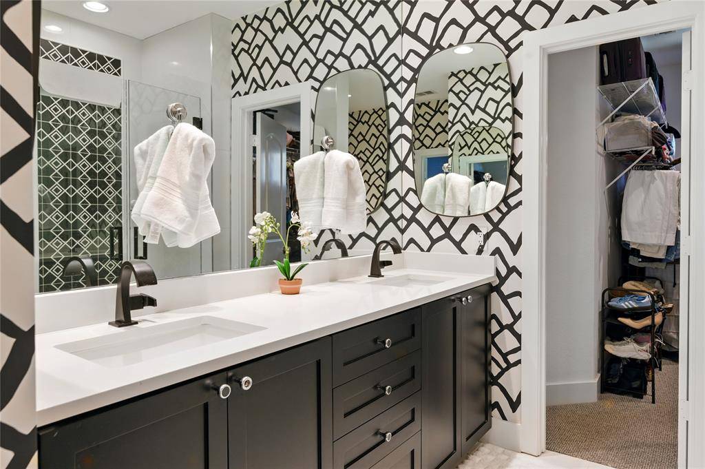 Fully reimagined in 2023 by Thom Stayart, this light-filled home stands out with thoughtful upgrades and designer touches throughout. Highlights include recessed lighting, crown molding, glass railings, stainless bannisters, remote blinds, and a stunning book-matched fireplace. The kitchen features stainless appliances, glass-front cabinetry to the ceiling, granite and quartz countertops, pull-out shelving, and sleek under-cabinet lighting. A bold powder room with Christian LaCroix wallpaper adds personality. The first-floor guest suite offers sisal carpeting and a private bath, while the top-level primary suite impresses with hand-painted Schumacher wallpaper, walk-in closet, and a frameless shower—plumbed for a future tub. Across the hall is a flex space overlooking the pool and could function beautifully as a media room, gym, or office. This property is truly spectacular and will not last long. Schedule your showing today!